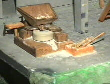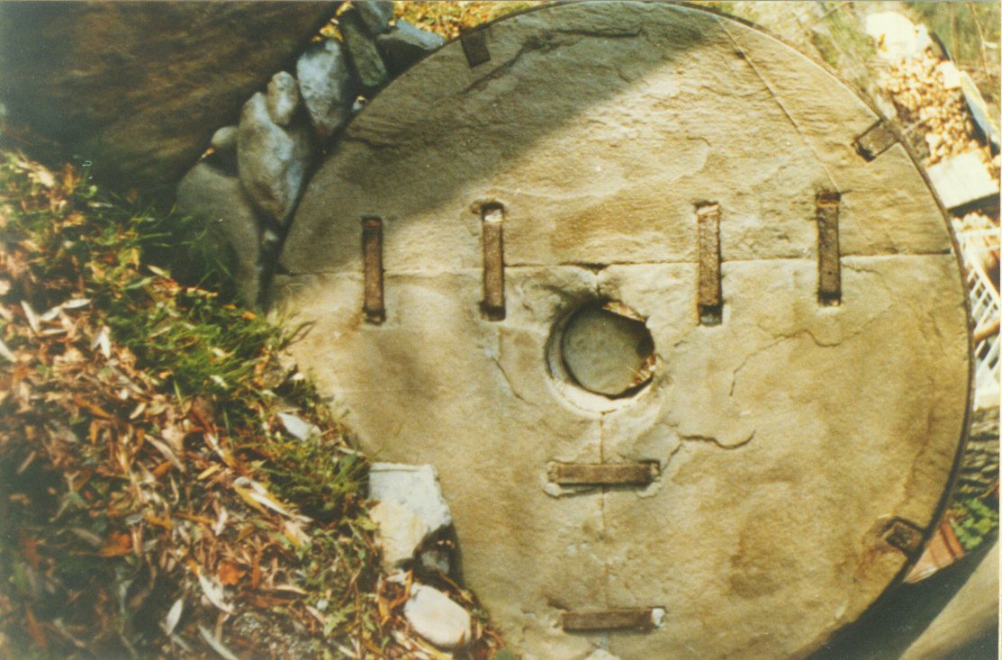 in un pezzo di legno fisso nella macina inferiore. L' estremità dello
