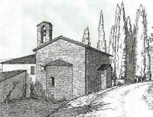 Piccola chiesa quasi sulla riva del Tevere, in un paesaggio di grande suggestione, vicino al colle di Montedoglio che si affaccia direttamente sul lago formato dalla diga e su cui sorgeva un antico castello. Assai antica, è stata rimaneggiata. Rimane, ristrutturata, l'abside qui visibile nel disegno di M. Foni. |