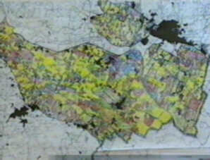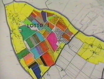 | Come si è già notata la dispersione delle colture nella cartina precedente, così in questa è evidente la frantumazione della proprietà fondiaria che può determinare una situazione di disagio per quanto riguarda lorganizzazione dellazienda agricola e la sua conduzione. | ![]() |